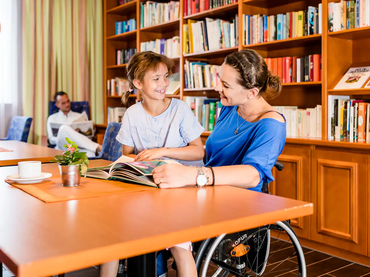 Stufenlose Zugänge und breite Türen ermöglichen das Erreichen aller Räume im Haus. Über geräumige Aufzüge gelangen Sie auf jede Etage. Alle behindertengerechten Bäder sind mit bodenbündigen Duschen und unterfahrbaren Waschtischen ausgestattet, bei Bedarf auch mit Haltegriffen. Unsere behindertengerechten Zimmer verfügen über Spezialbetten, die meisten davon elektrisch verstellbar.