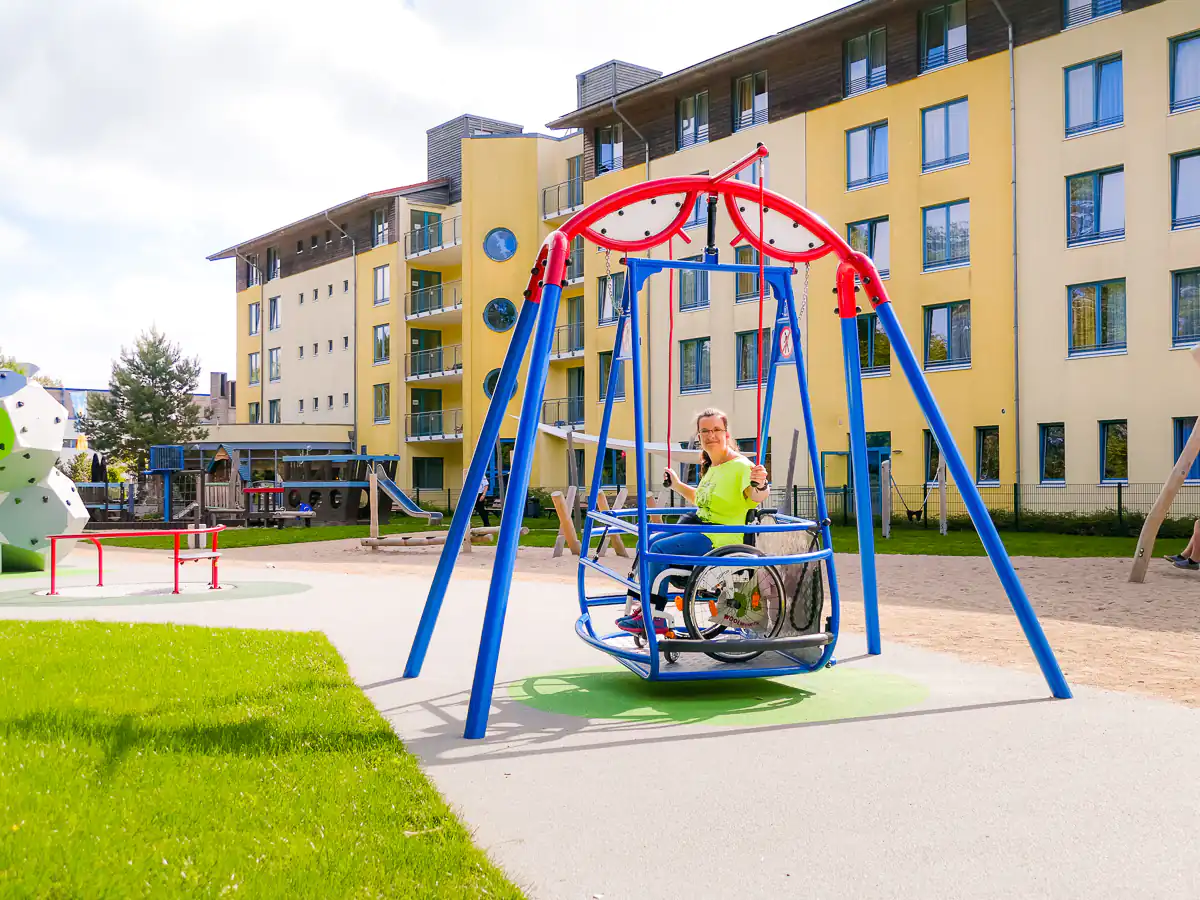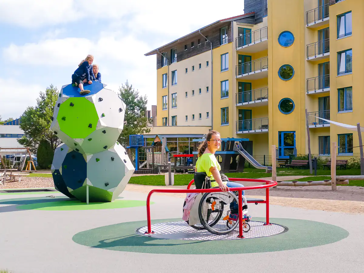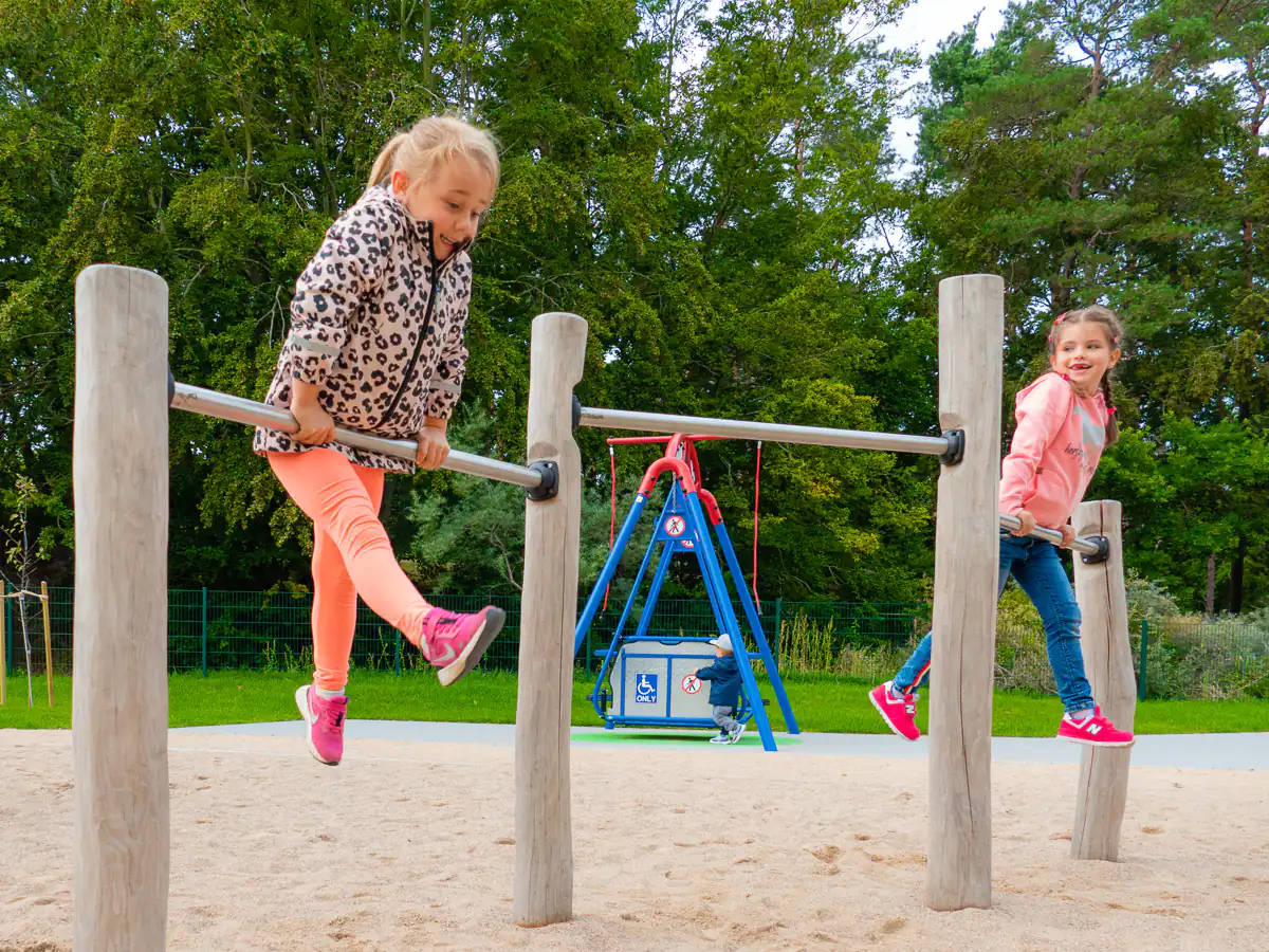 Unser abwechslungsreicher Bewegungspark ist etwas ganz Besonderes. Die modernen Sport-, Freizeit- und Spielgeräte sind teilweise barrierefrei und ermöglichen allen Altersklassen sowie Menschen mit und ohne körperliche wie geistige Beeinträchtigung gemeinsame Spielfreude.