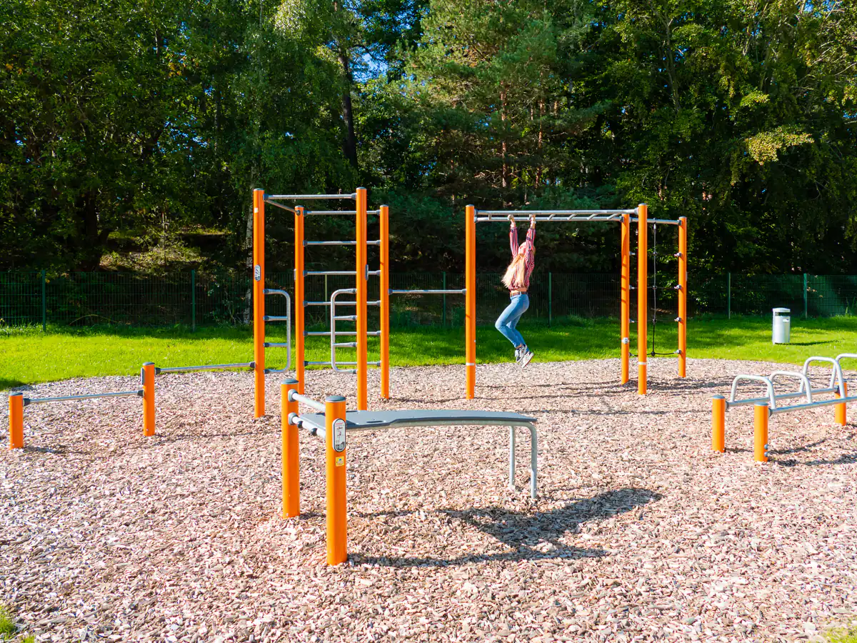 Die Kombination für CALISTHENIC-TRAINING und STREET WORKOUT bietet eine Vielzahl verschiedener Trainingseinheiten. Unsere Gäste gelangen auf sportliche Art und Weise von einem Ende zum anderen. Die „Kombi 3 Pro“ mit ihrer 150 cm hohen Klimmzug-Station eignet sich wunderbar für Parcours-Trainings und ist für Kinder ab 13 Jahre geeignet.