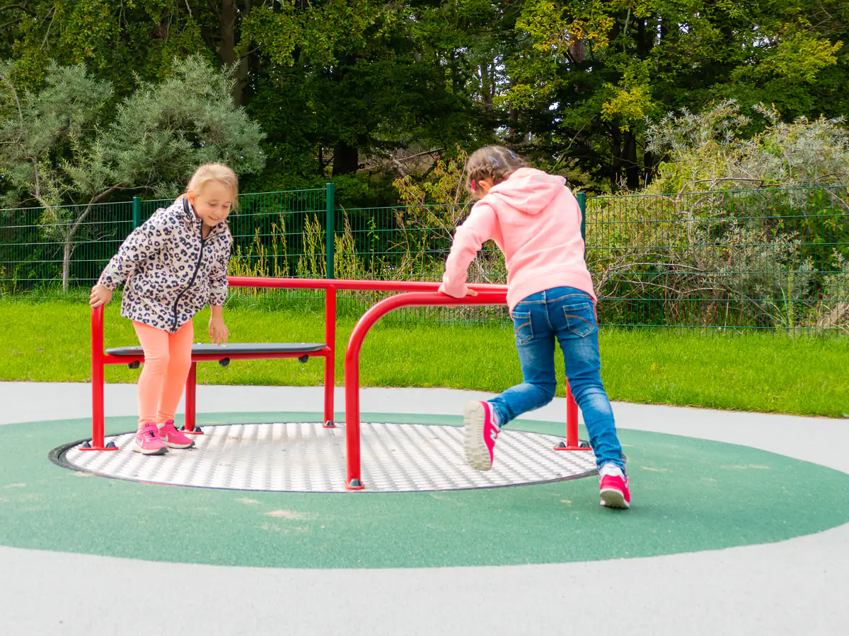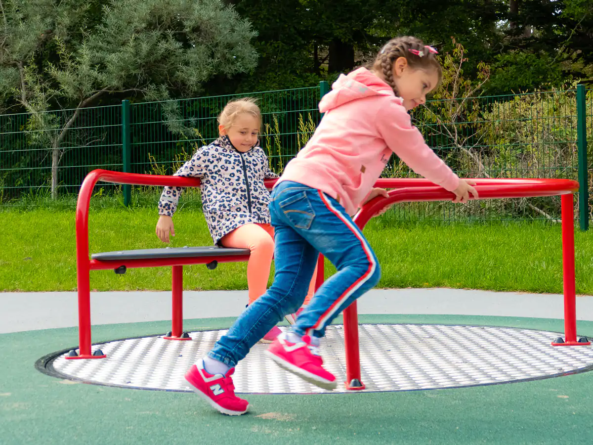 Das KARUSSELL mit Bank kann gleichzeitig von Rollifahrern und Kindern zwischen 2-8 Jahren genutzt werden.